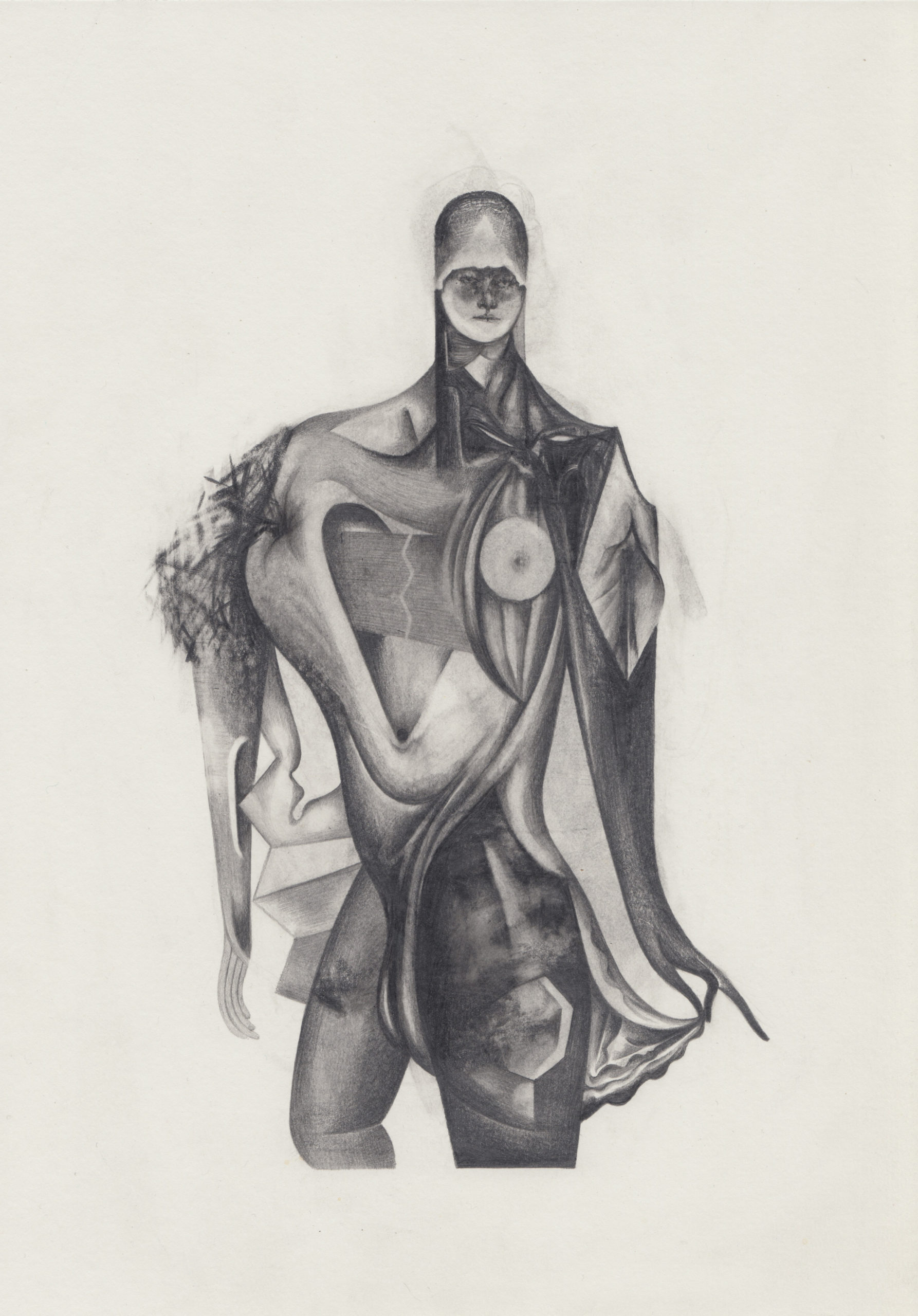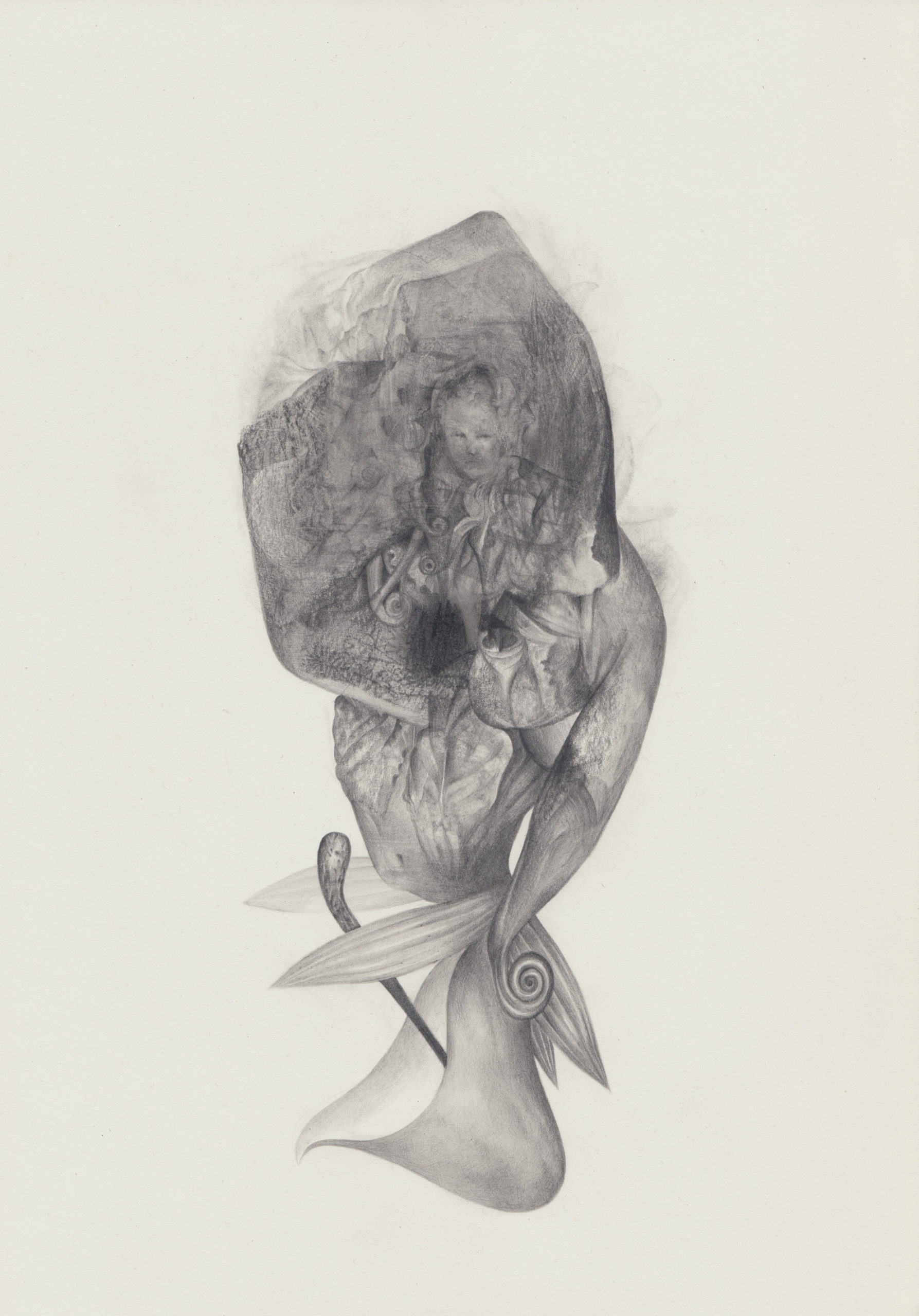 Sabine Graf (1981geboren in Suhl, 2012 Meisterschülerabschluss an der HGB Leipzig) präsentiert gewohnt feinzeichnerische Arbeiten. Sie zerlegt Körperform und Geschlecht, setzt dies wieder zusammen, schafft neue Körper, neue Form, die beim Betrachter gleichermaßen eine Art meditativer Ruhe und Beunruhigung auslösen.