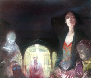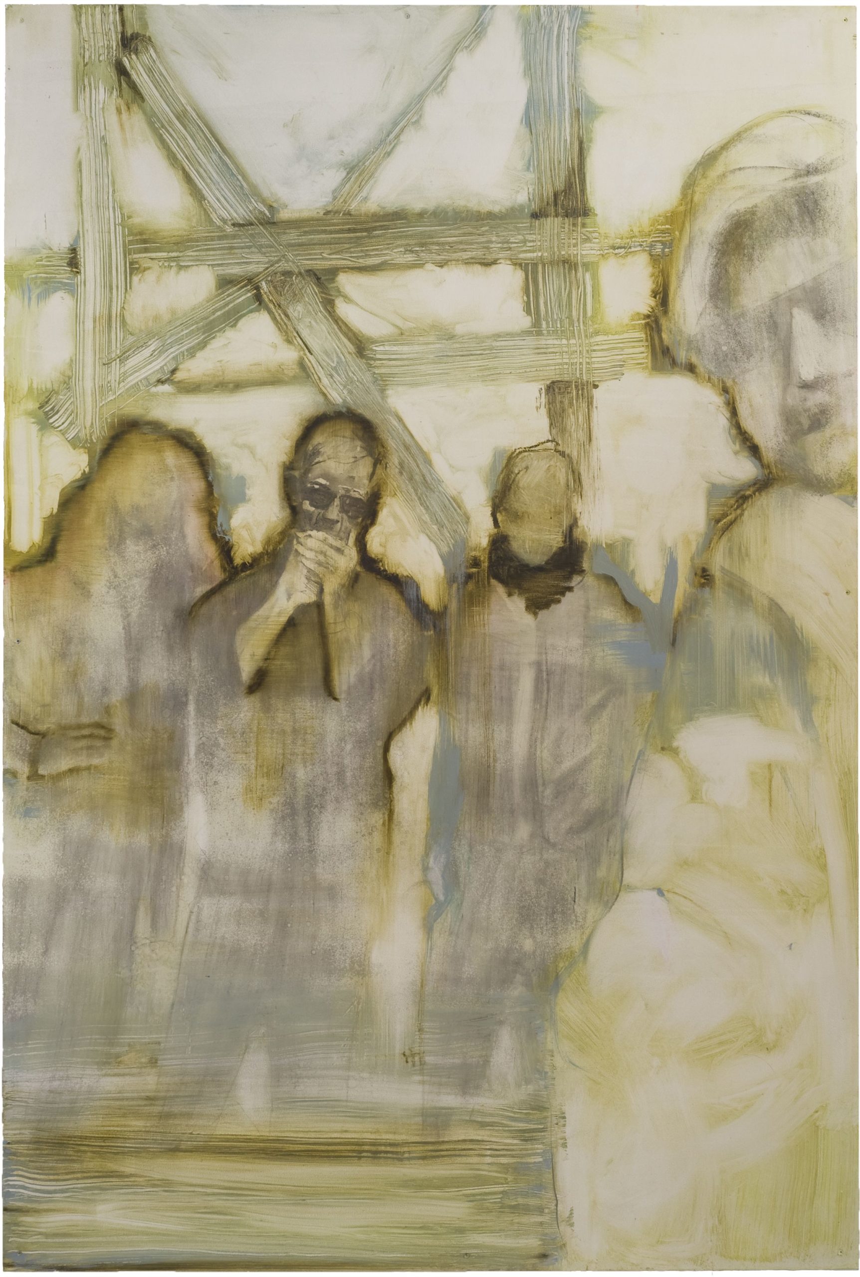 Lisa Wölfel, Abflug, 200×120 cm, 2016, Kohle und Öl auf Holz