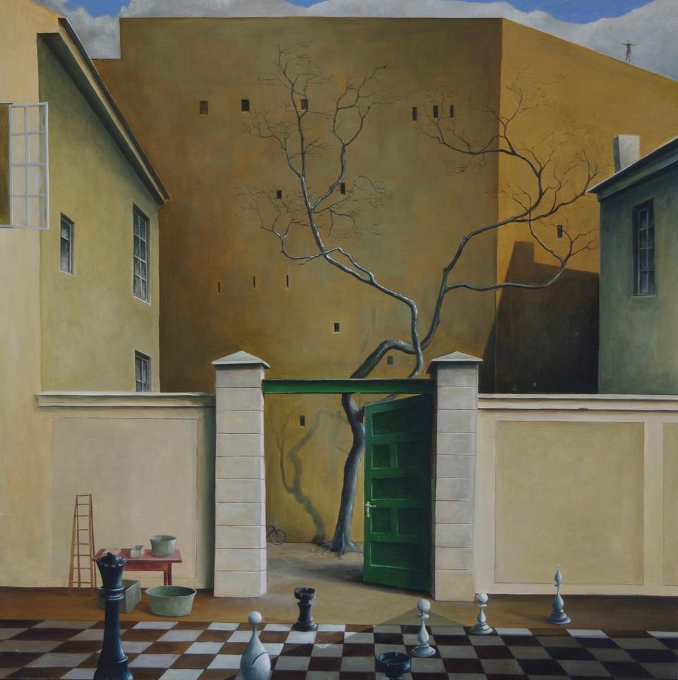 Benjamin Kerwien, Hinterhofschach, 2019, Mischtechnik auf MdF