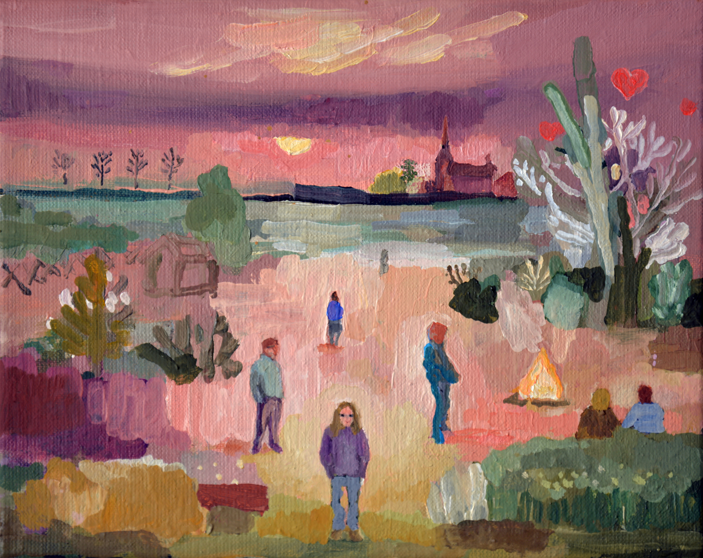Lutz Bleidorn, Gesellschaft im September, 24×30 cm, 2019, Öl auf Leinwand