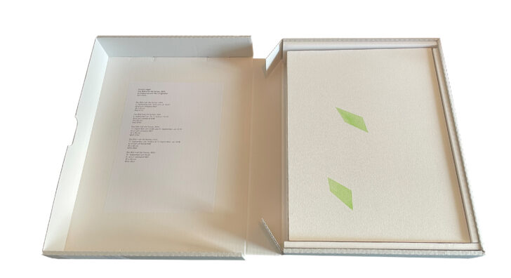 Jeweils fünf chronologisch aufeinanderfolgende Bilder der Serie werden zusammen in einem Karton archiviert.