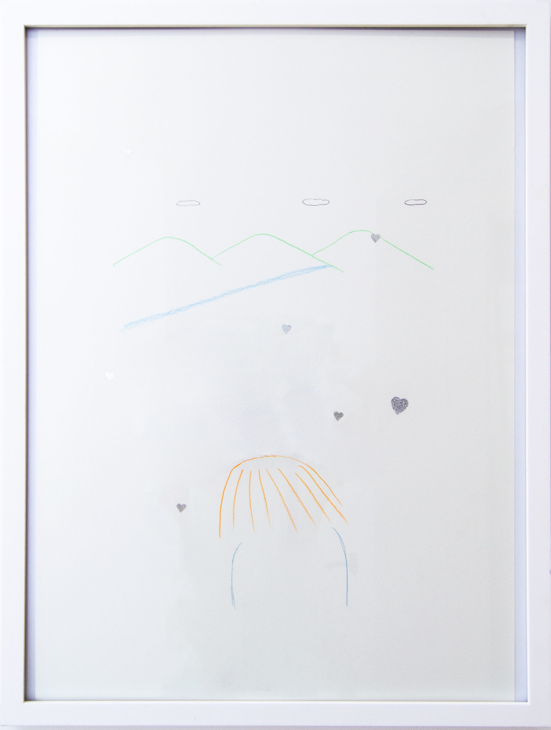 Ihr eigener Schatten, den sie auf die Straßen von Berlin warf, während sie alleine durch die ihr fremde Stadt lief, erinnerte die 1989 in Korea geborene Künstlerin an einen Hund, an einen Hund mit Schlappohren, und inspirierte sie zu einer Serie von Zeichnungen, die den Hund in einem Winkel ihres Selbst bannt.